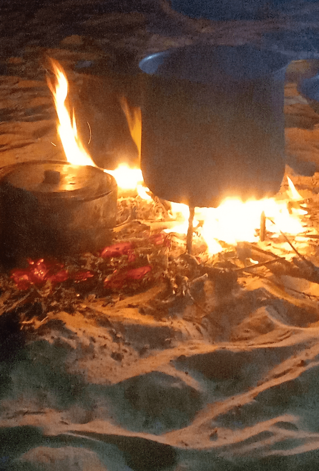 On allume le feu, on partage le repas, on chante, on danse, on raconte nos histoires.