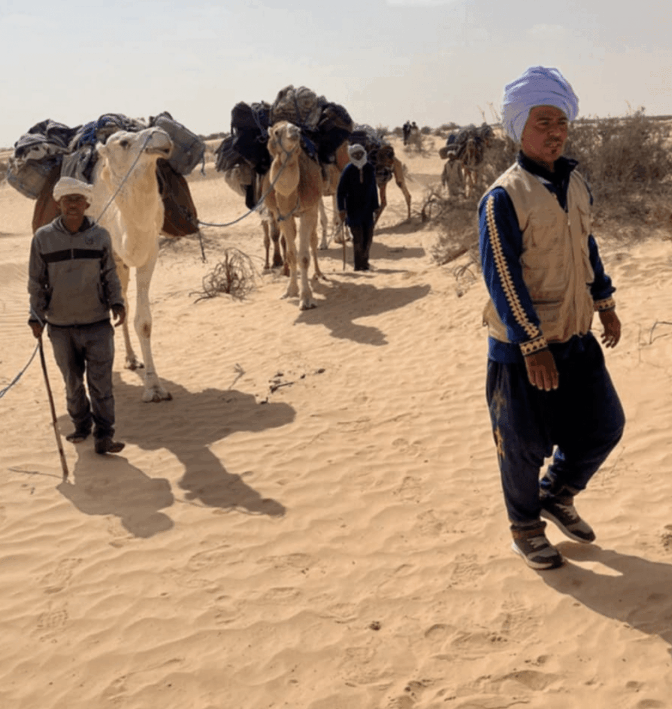 Vivre dans le désert, c’est vivre autrement. Ici, il n’y a pas d’horaires, pas de contraintes. On se lève quand le soleil nous y invite, on marche quand le vent se lève, on s’arrête quand le corps le demande. Notre vie est simple, tournée vers la nature.